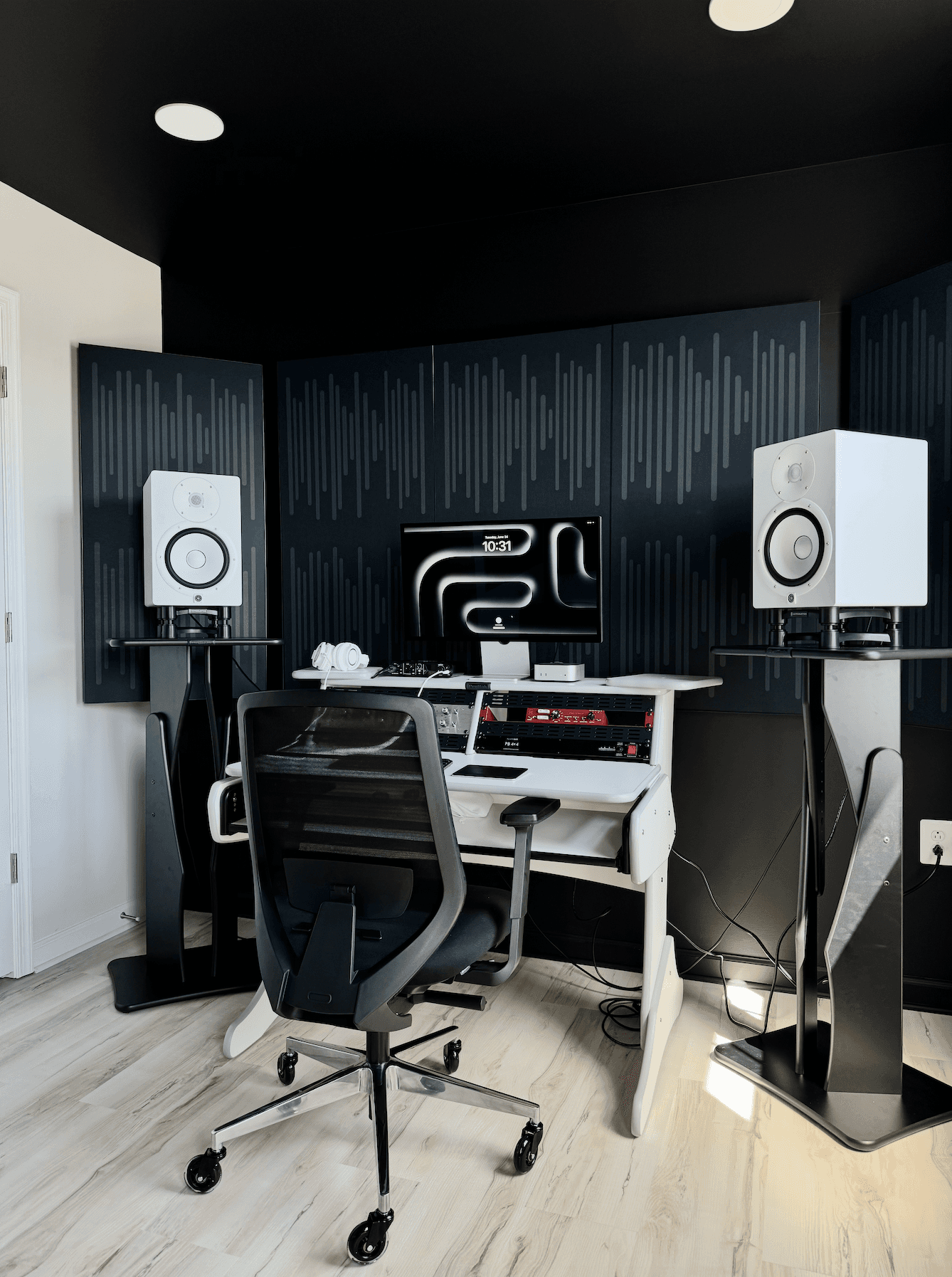 Turbine Studio is built around classic analog character paired with uncompromising precision. Compression is handled by the Warm Audio WA76-A, delivering fast, vintage FET punch, while harmonic weight and tone come from Golden Age Project Pre-73 MKIV transformer-based preamps. Monitoring is anchored by Yamaha HS8 reference monitors, isolated with IsoAcoustics stands for honest, reliable translation. Conversion is driven by ESS Sabre32 Ultra™ converters, prized for their exceptional dynamic range, transient accuracy, and pristine clarity. Every signal path runs exclusively through Mogami Gold cabling, and the room itself is acoustically shaped using Vicoustic materials, treating space as part of the instrument. The result is a refined, top-tier environment for elite sound design, mixing, and mastering.